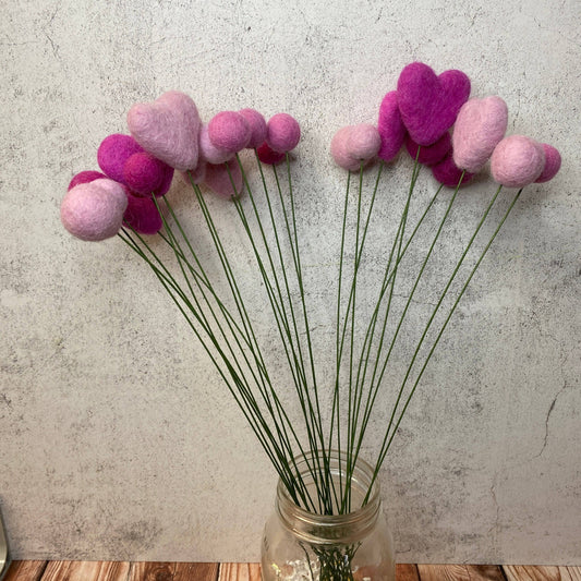 Felt Heart Ball Bouquet Singles Pretty in Pink