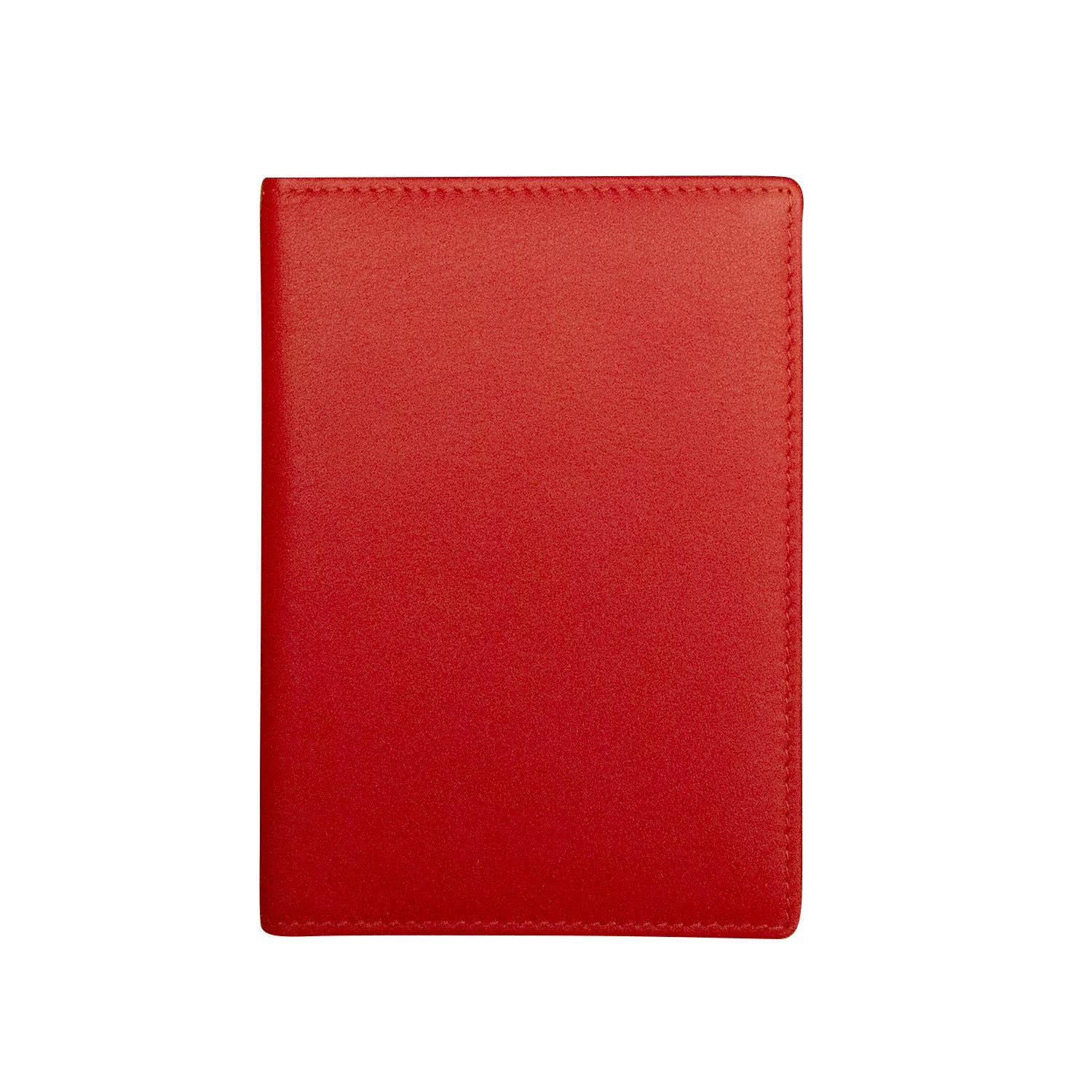 Leather passport case with RFID blocking lining. Exterior- back slide pockets. Interior- ID window, passport window, credit card slots, and slide pocket. Dimensions: 4 x 5.75 x .5 in.