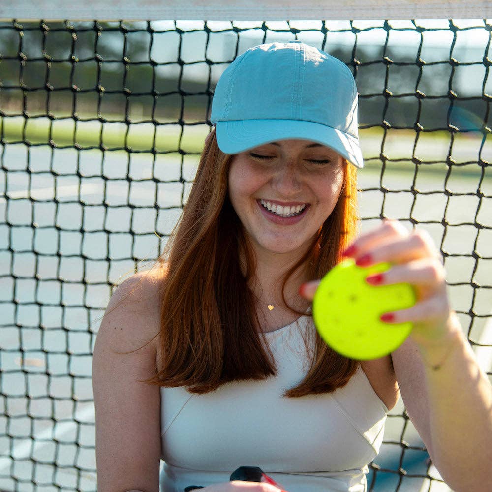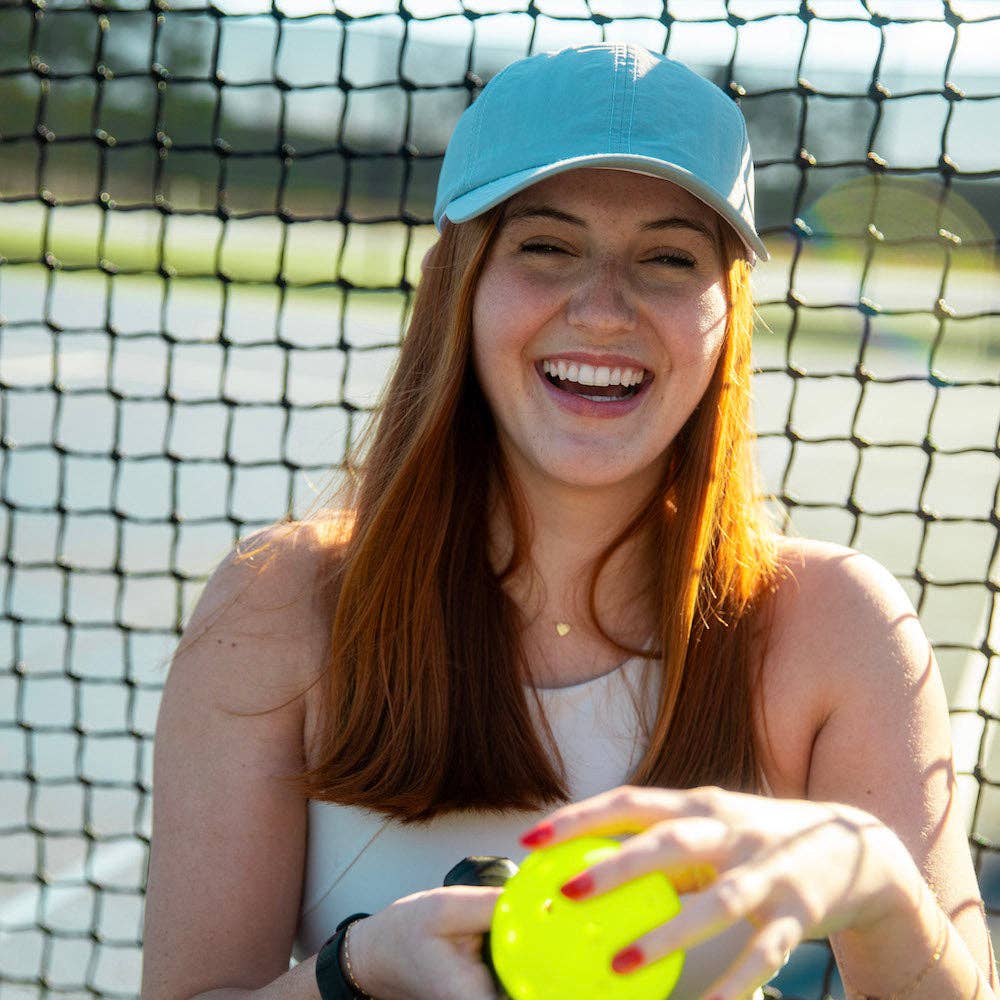 Stay cool and comfortable on your runs with our unisex performance running hat in a refreshing pale blue color. Designed for ages 10 and up, this adjustable hat features a mesh panel for moisture prevention. Don't let sweat get in the way of your workout - grab our running hat now!