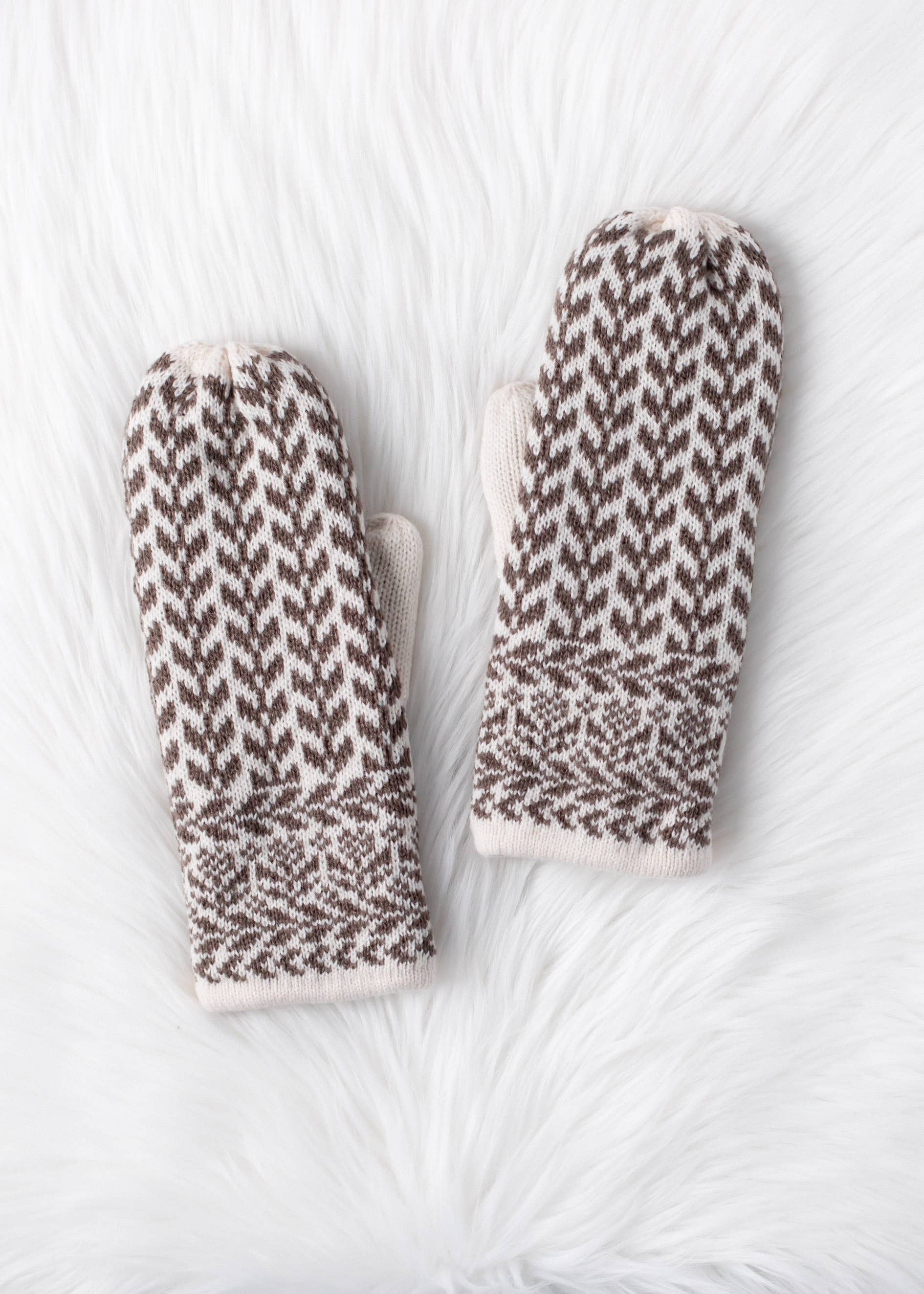Beige & Taupe Patterned Mittens