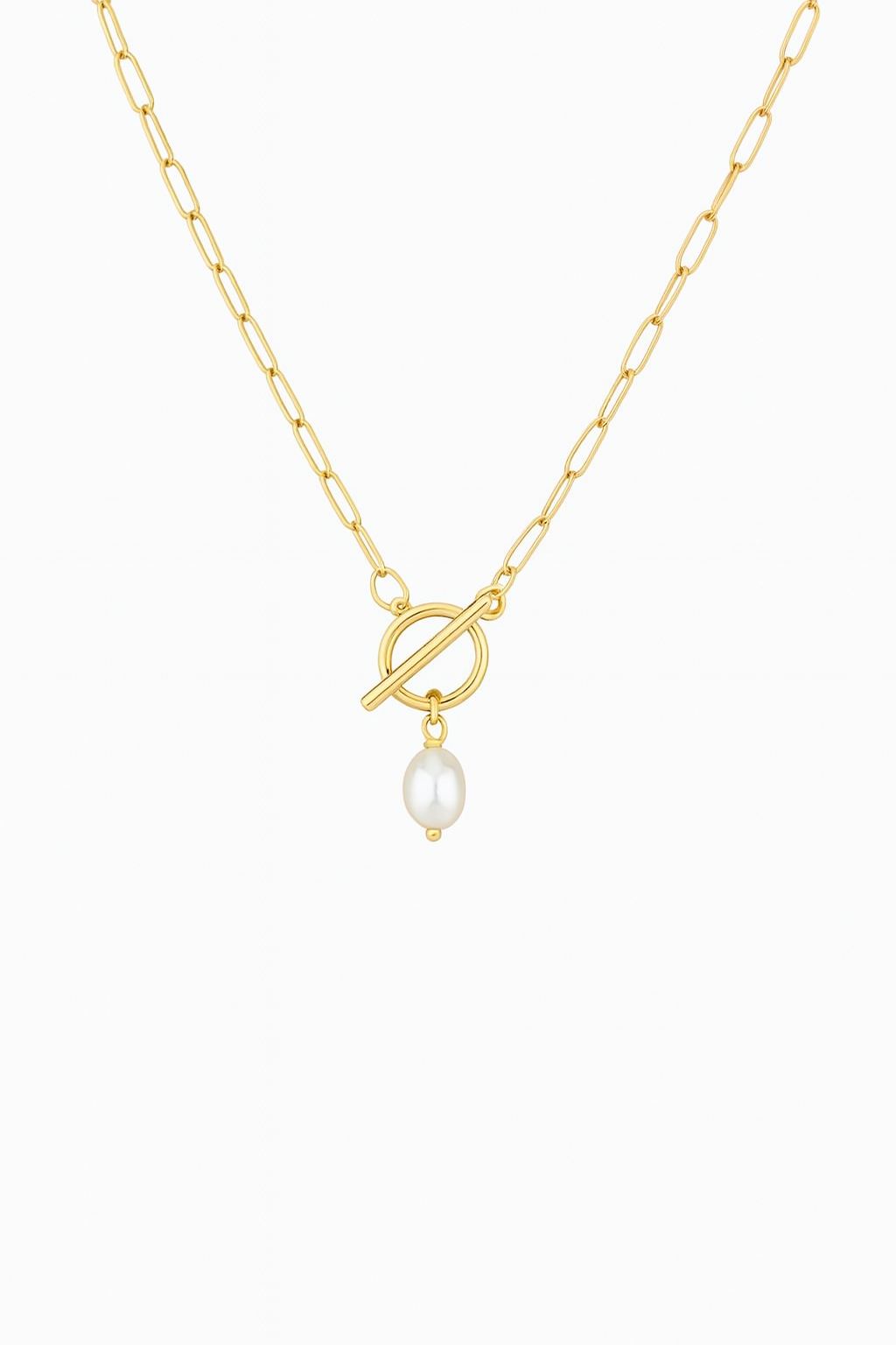 Elevate your everyday style with this dainty 18K gold-plated stainless steel necklace, designed with a timeless minimalist touch. The necklace features a luminous freshwater pearl that adds a touch of elegance, making it perfect for layering or wearing solo as a statement of refined simplicity.