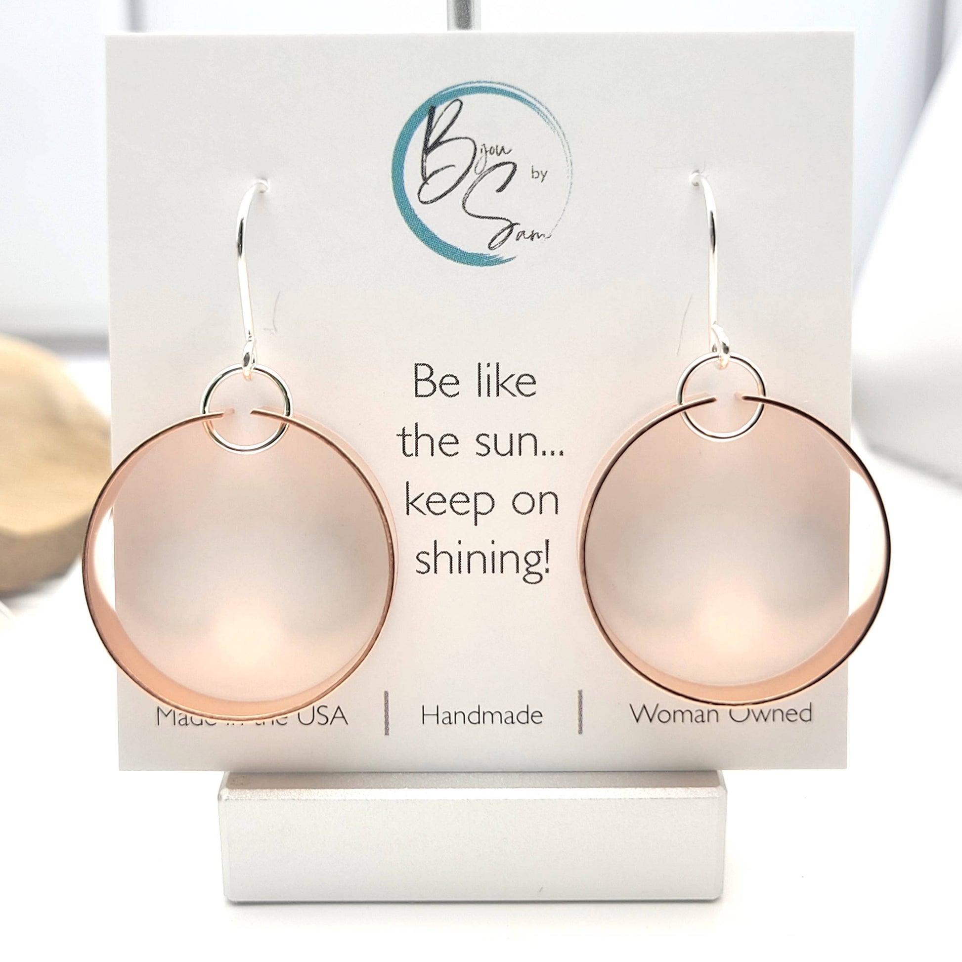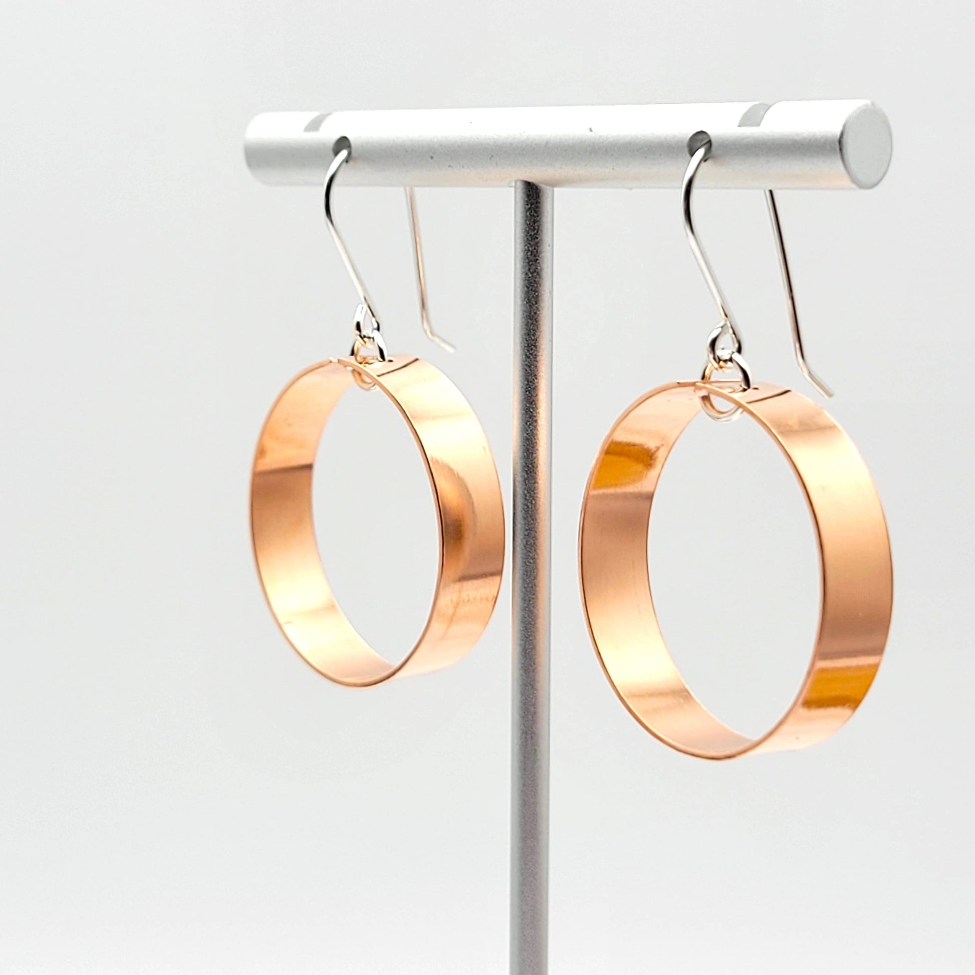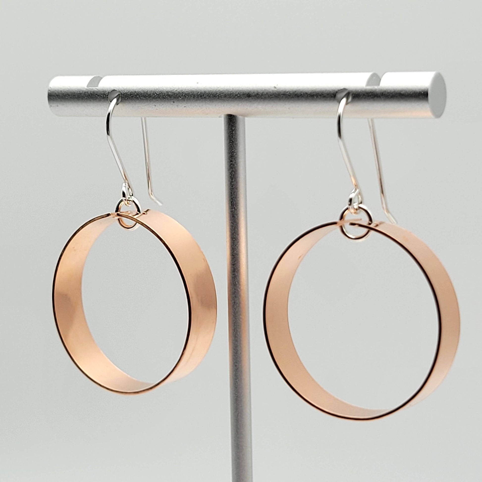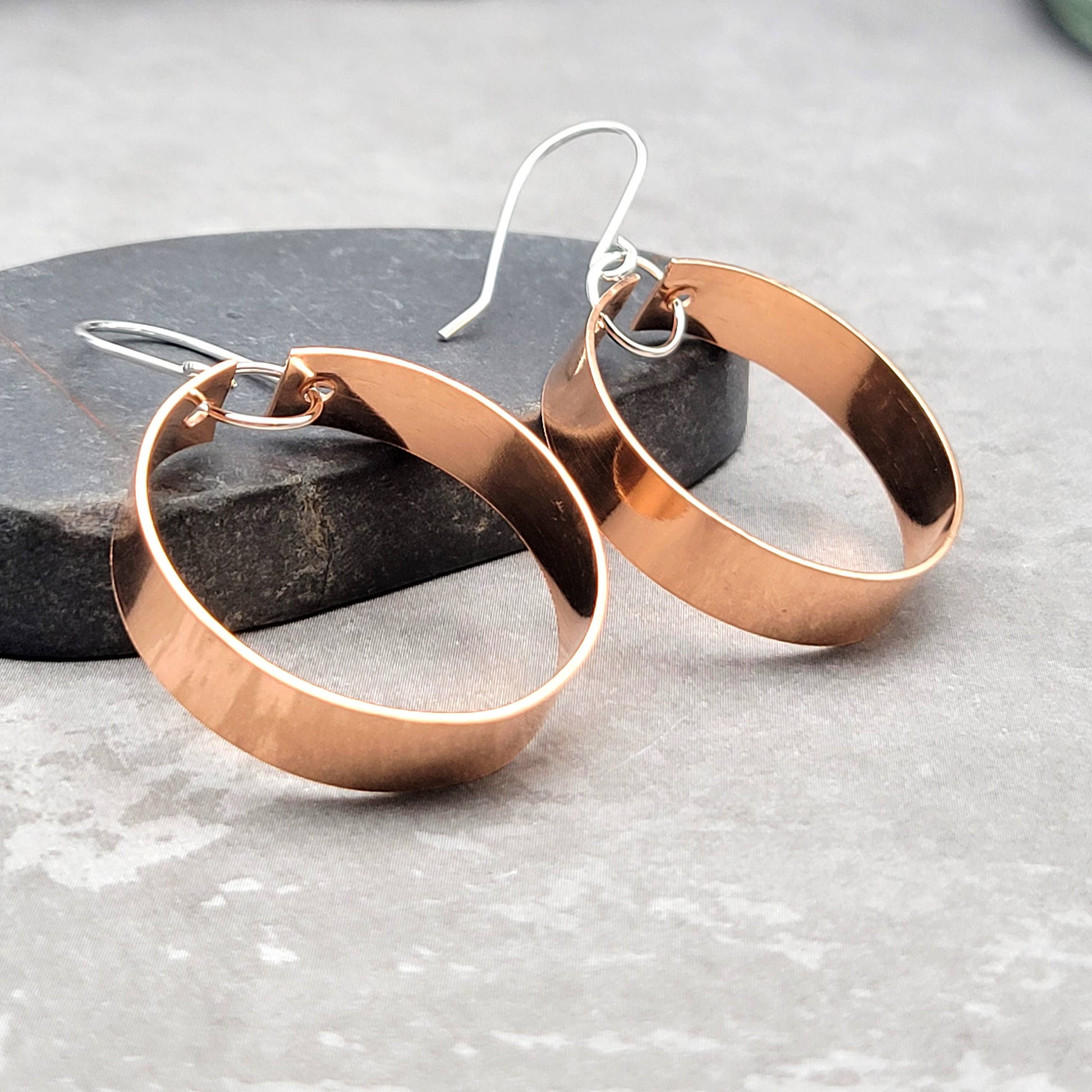 Made with copper and sterling silver, they hang approximately 1.75" from top of ear wire. All of our items are Small Batch and Handmade. Everything is carefully handcrafted in the USA and we are a Woman Owned business.