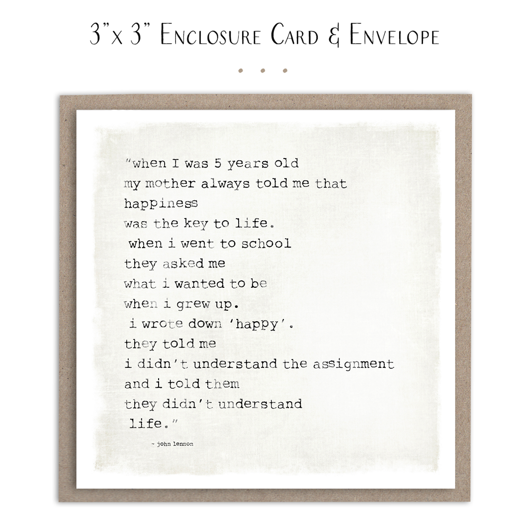 John Lennon Quote - When I Was Five 'happiness' - Inspirational mini enclosure card